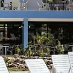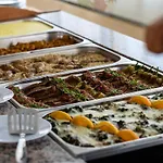 Gästerna kan prova ontbijt, som vanligtvis serveras på en av restaurangerna på stället, till exempel på BBQ Azurro. Det finns en stilig lobbybar.